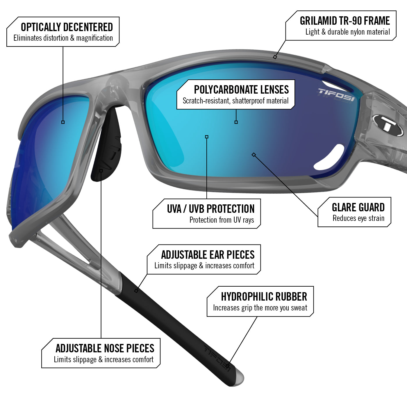 At Tifosi, we believe all athletes deserve prescription shades to keep up with their active lifestyle. That's why we've designed Dolomite 2.0 to be the ultimate cycling and running sunglasses, providing the necessary protection and support to push your limits. Whether training or competing, Dolomite 2.0 is guaranteed to be your go-to accessory for any activity.