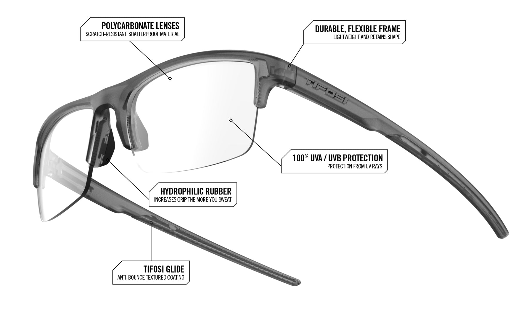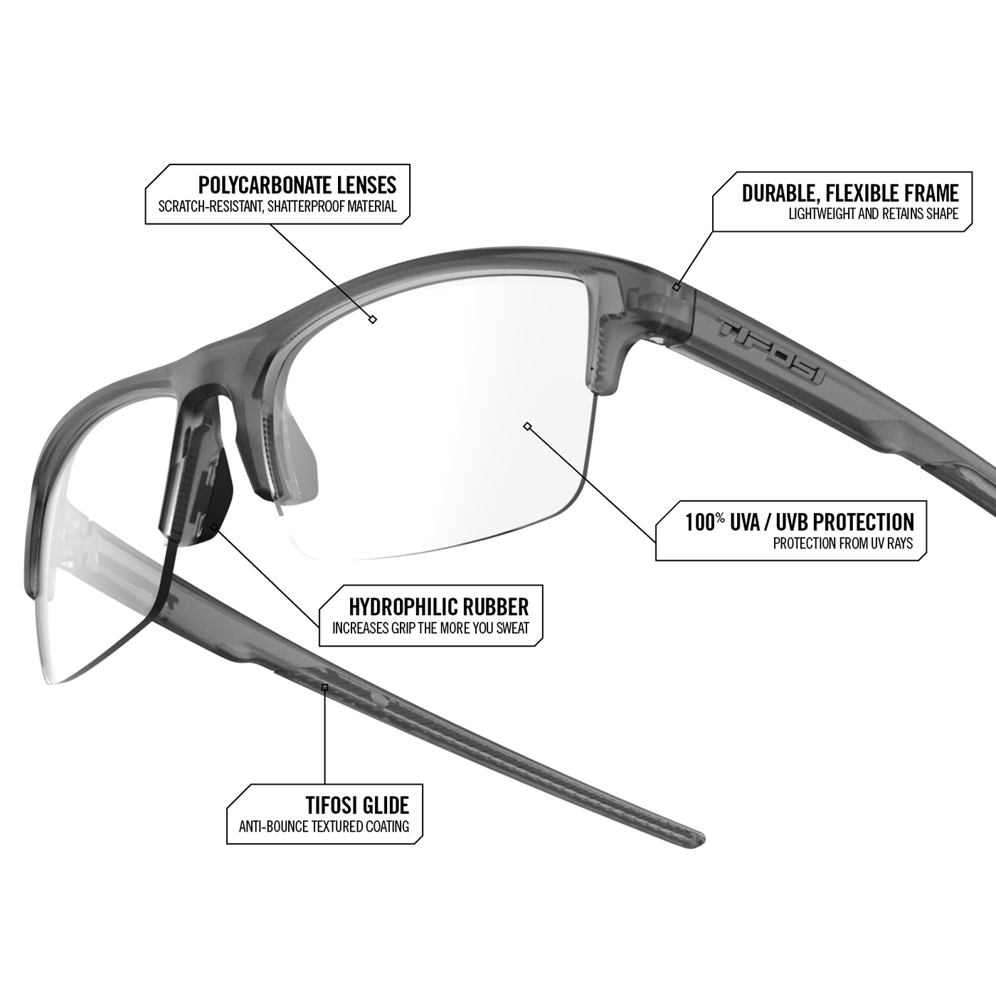 – Clear Rx lenses for everyday clarity
