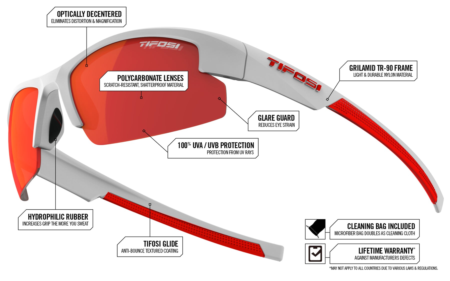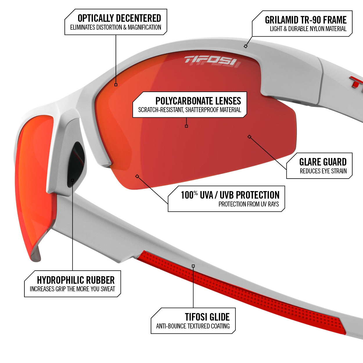 Stay focused on your game without distractions. Shutout features hydrophilic nose pads that increase grip as you sweat, providing a secure fit that won't slip or slide during intense activities. The Tifosi Glide technology takes comfort to the next level, allowing the frame to slide on effortlessly and ensuring an anti-bounce fit.