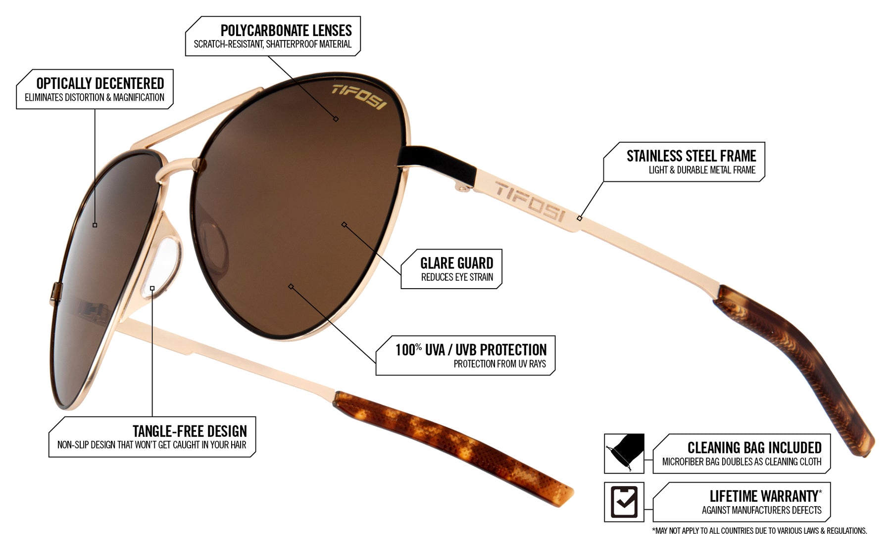 At Tifosi Optics™ we have built our name through our customer service and standing behind our product 100%. Therefore, we will warranty any sunglass against manufacturer’s defects to the original owner for the life of the product. Tifosi Optics will either replace or repair your glasses at our discretion. Learn more about warranty claims.