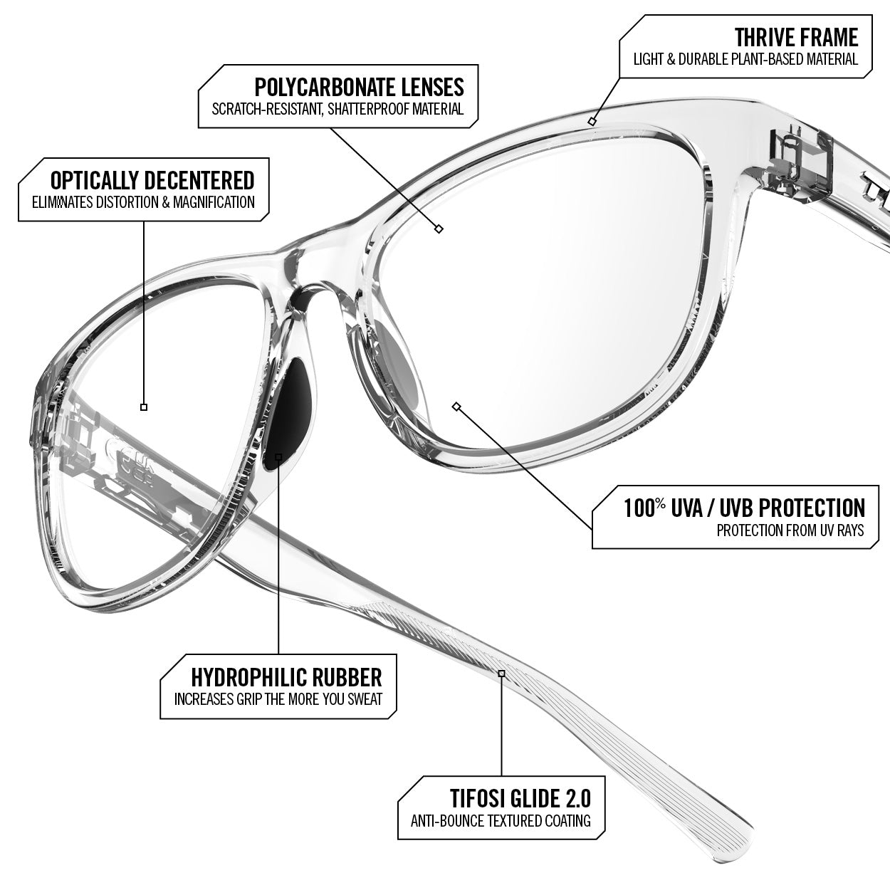 Equipped with hydrophilic rubber nose pads and ear pieces, these readers stay in place as you move. Tifosi Glide 2 technology ensures a smooth, tangle-free fit, making Swank glasses easy to wear and remove without pulling hair.