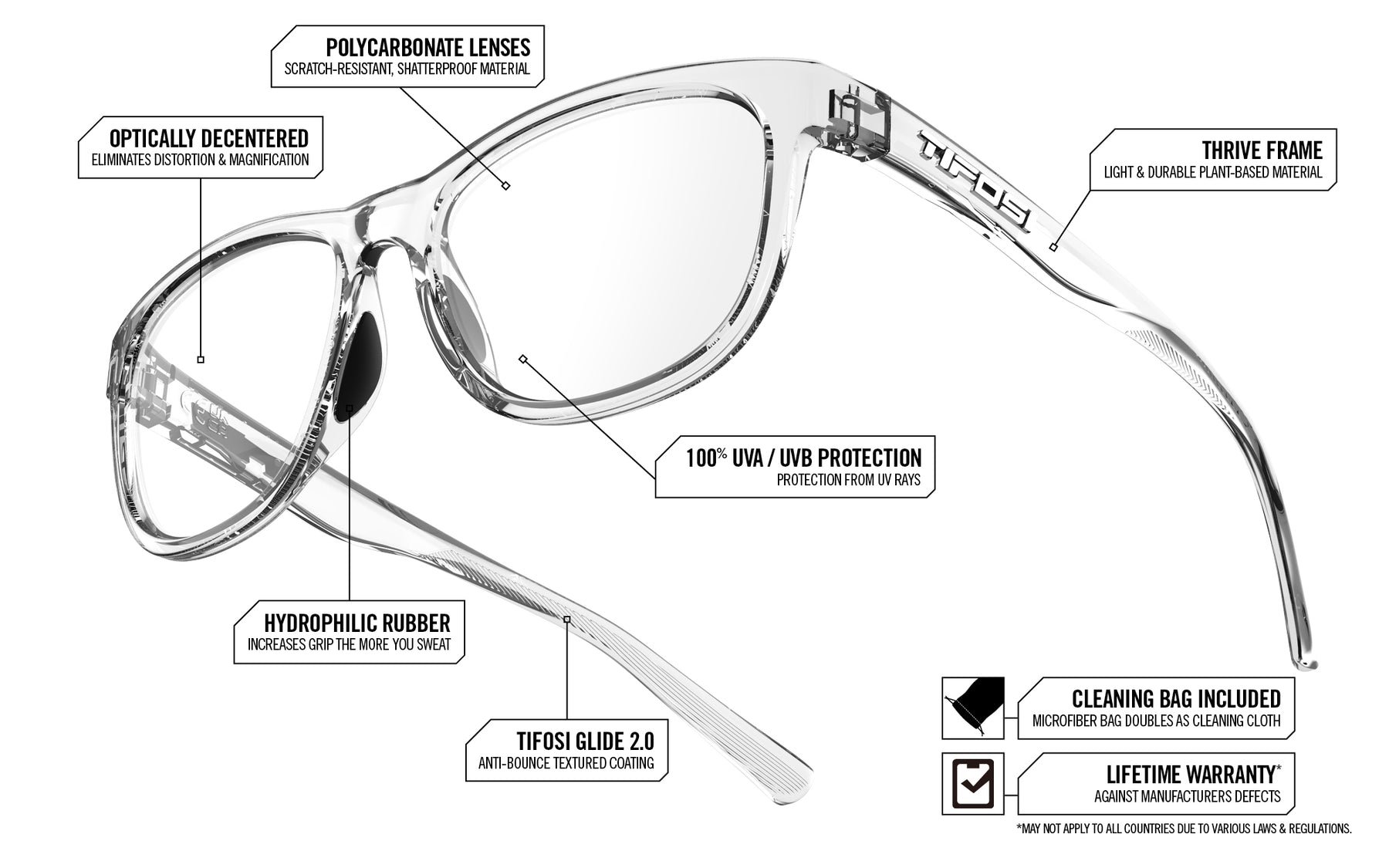 At Tifosi Optics™ we have built our name through our customer service and standing behind our product 100%. Therefore, we will warranty any sunglass against manufacturer’s defects to the original owner for the life of the product. Tifosi Optics will either replace or repair your glasses at our discretion. Learn more about warranty claims.