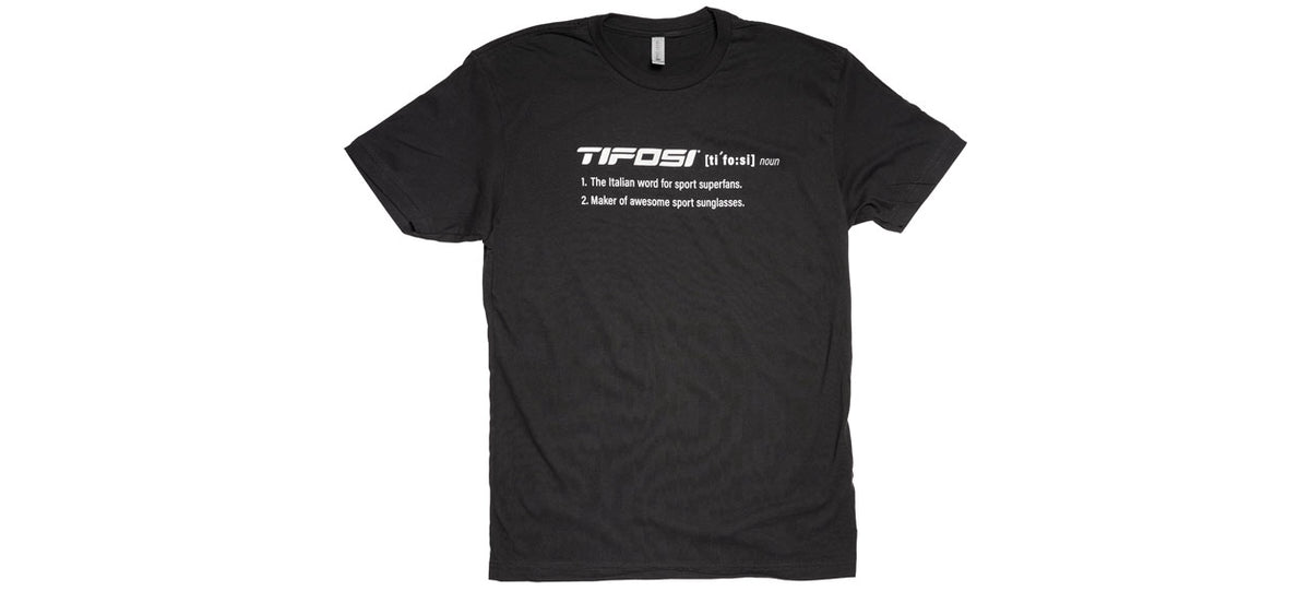 Introducing the Tifosi Definition T-Shirt, for the ultimate superfan! If you're a passionate follower or participant in sports and activities, this is the perfect way to show some love for your favorite sport and your favorite sunglass brand. The design includes our iconic name "Tifosi", pronounced [ti 'fo: si] which is the Italian word for "superfan". Made from 100% soft cotton and comes in black, both short and long sleeve styles so you can find the perfect fit for you. Whether you are out on the trails, running some errands, or wrapping up a casual marathon this comfortable t-shirt is ready to be an everyday staple in your wardrobe.